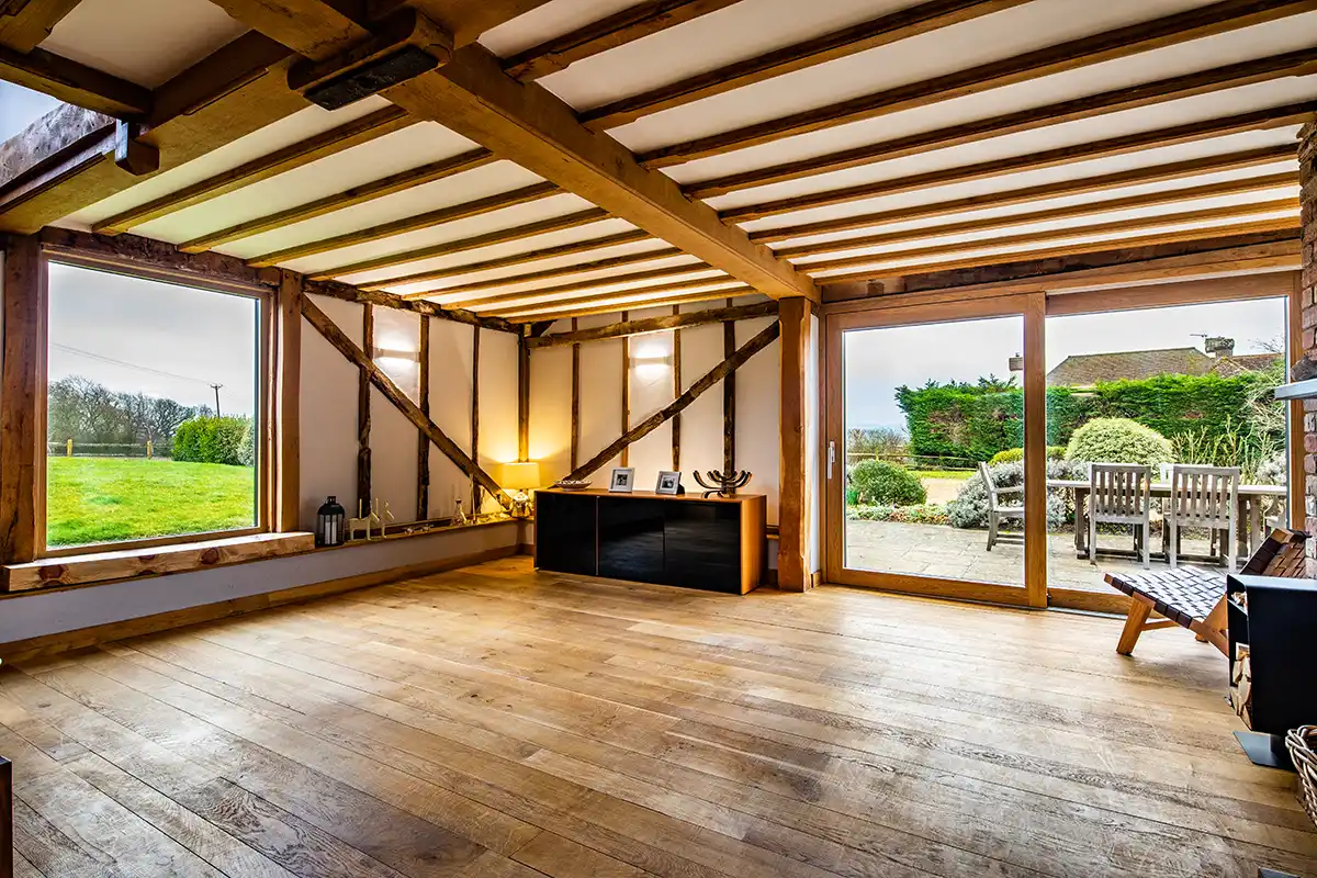 This barn upgrade in East Sussex blends contemporary aluminium clad oak with the traditional elements of the existing barn.