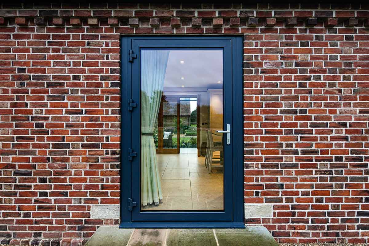 Folding doors are a key feature of the home, allowing optimal natural light admittance while creating a façade that perfectly blends modern and traditional farmhouse styles.