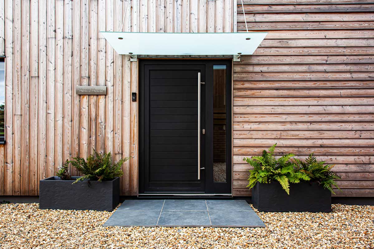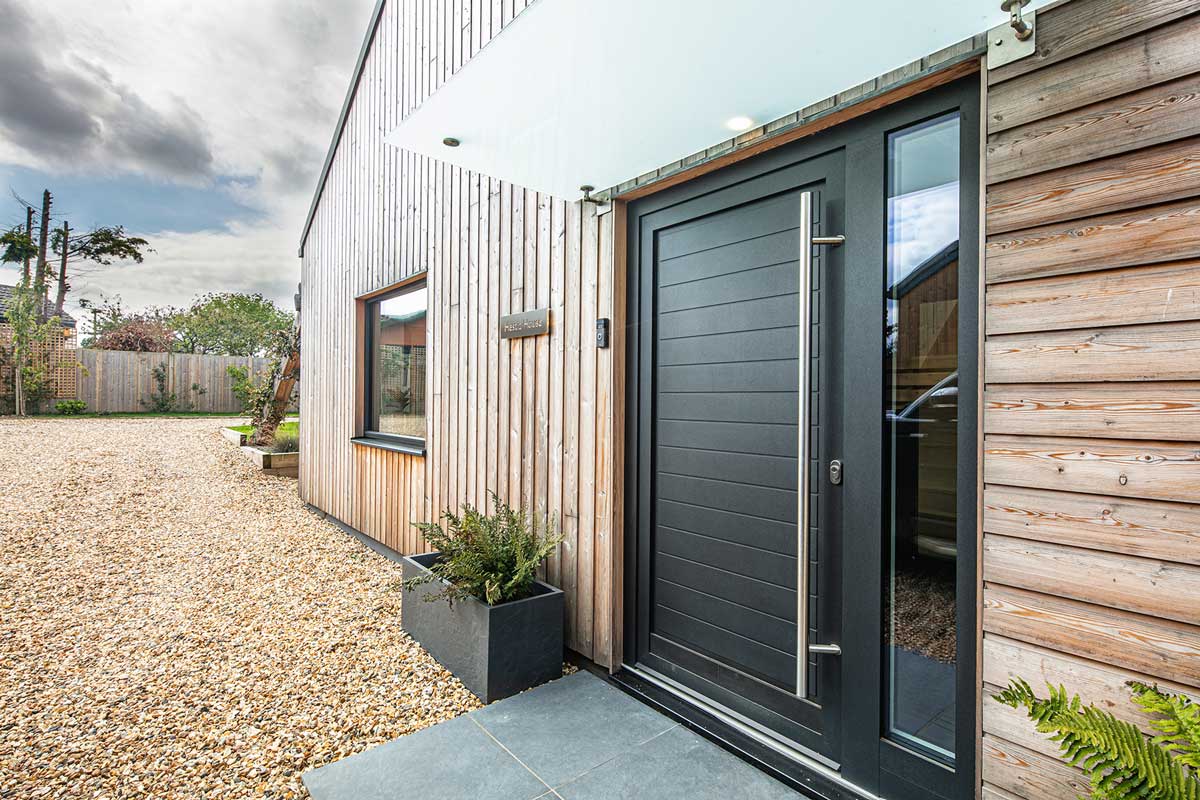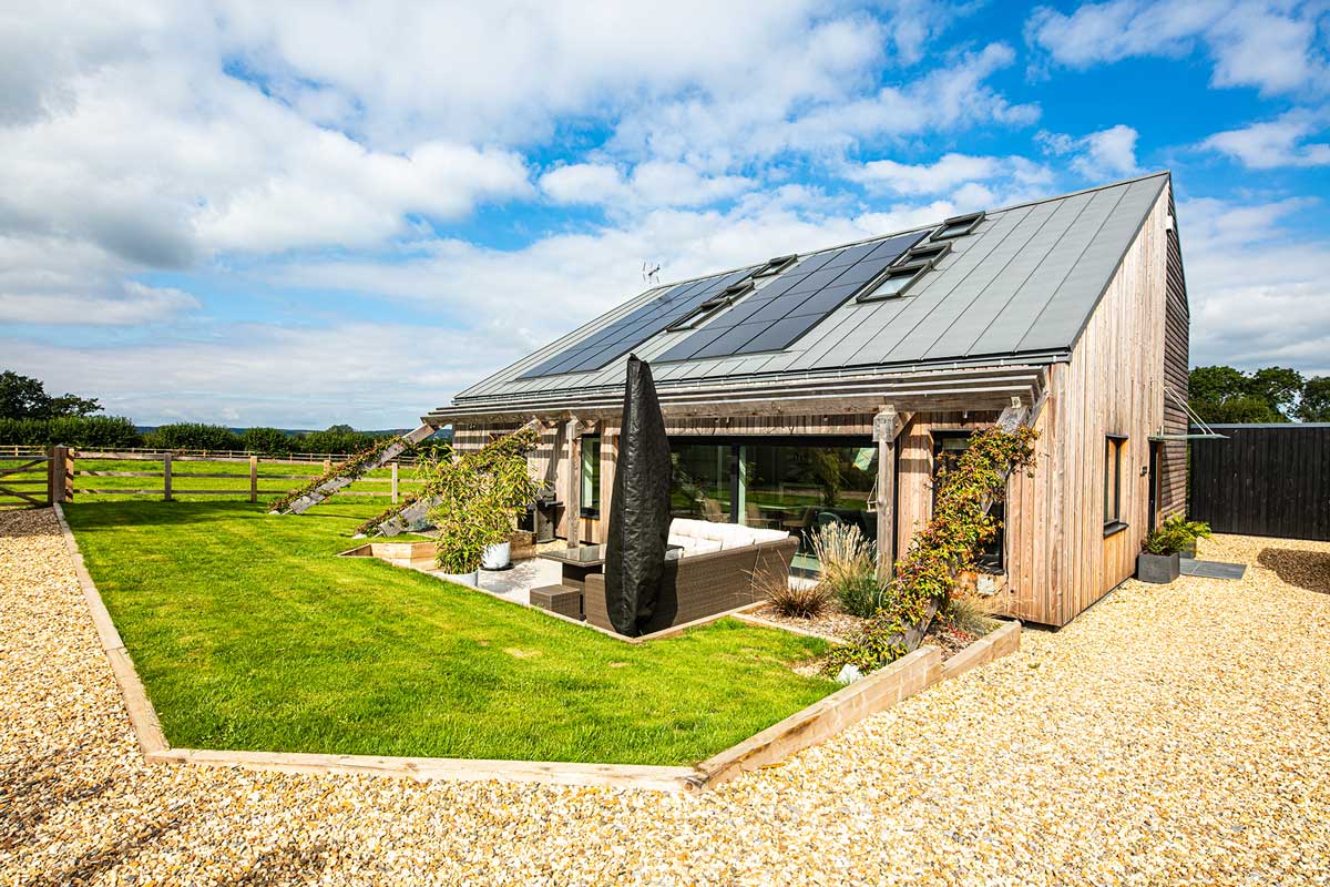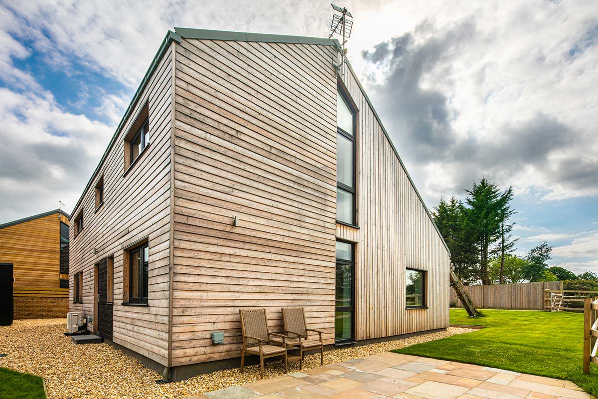 This three-bedroom timber-frame new build was designed by MBC Timber Frames to meet all the needs of a family home with a compact and cleverly designed footprint. Norrsken S316A Lift & Slide doors are a central feature, merging a beautiful outdoor entertaining space seamlessly into the kitchen-dining room.