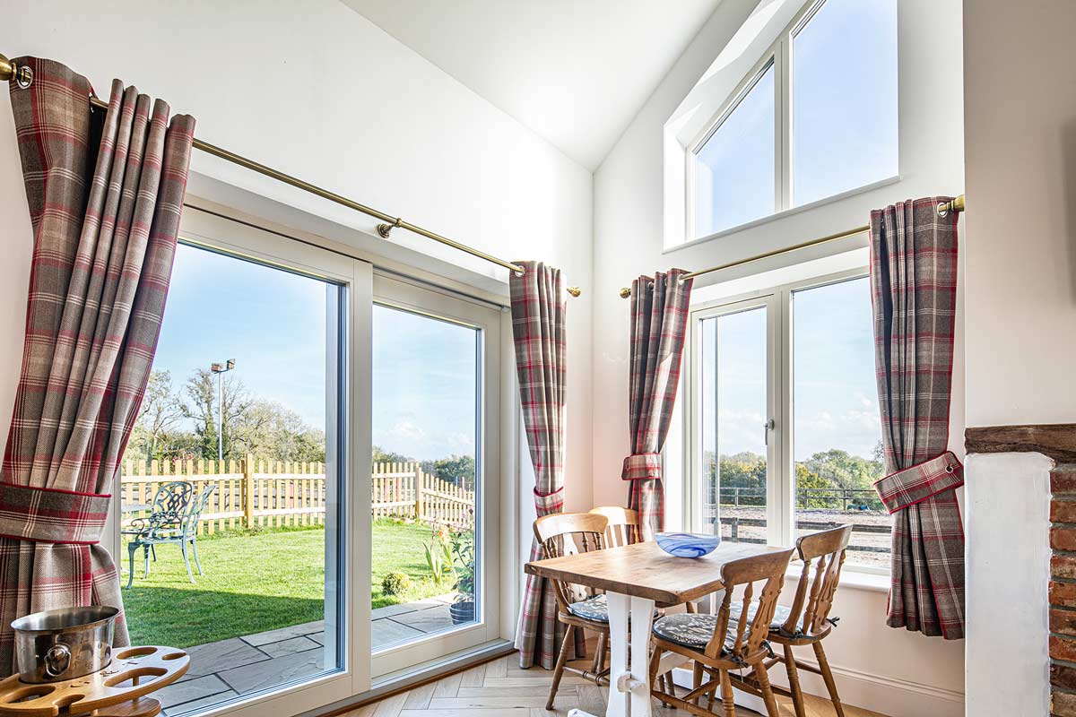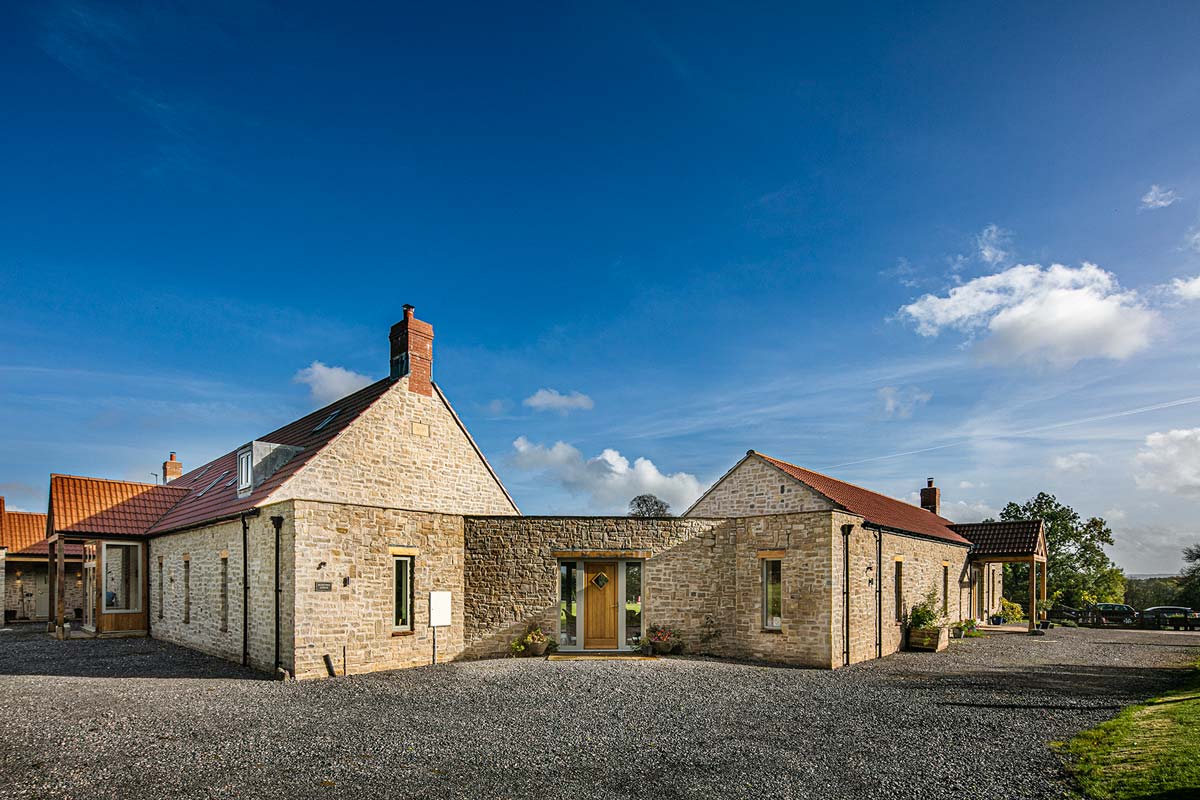 Completed in 2020, this farm-style new build provides a wonderful living experience in rural Somerset for its owners. The owners chose window shapes to fit the contours of their home.