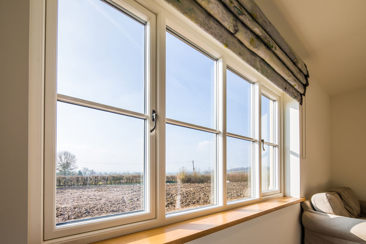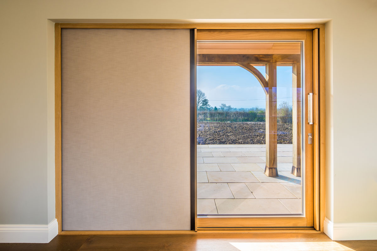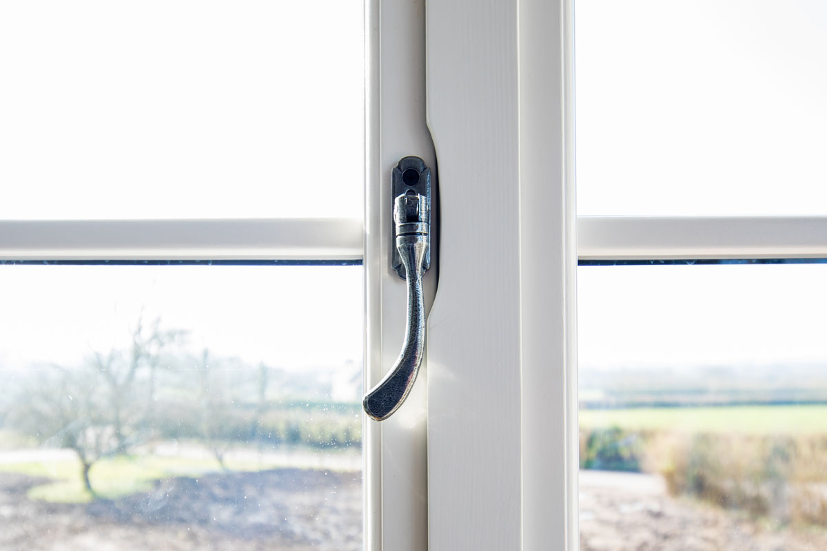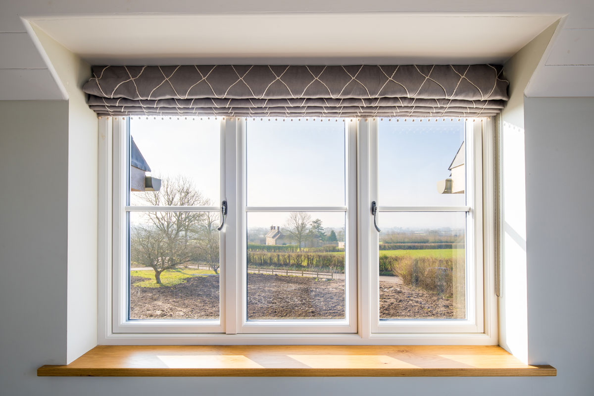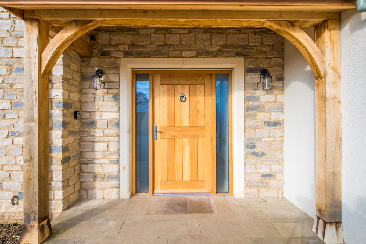 Aluminium clad casement windows are given a more traditional feel with the addition of horizontal glazing bars and blend beautifully with the moss grey powder-coated window frame claddings. These in turn look superb against the mixture of stone, render and timber claddings used throughout the external of the building.