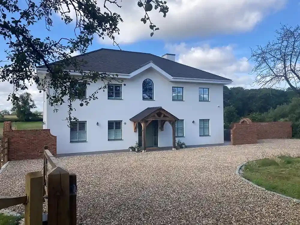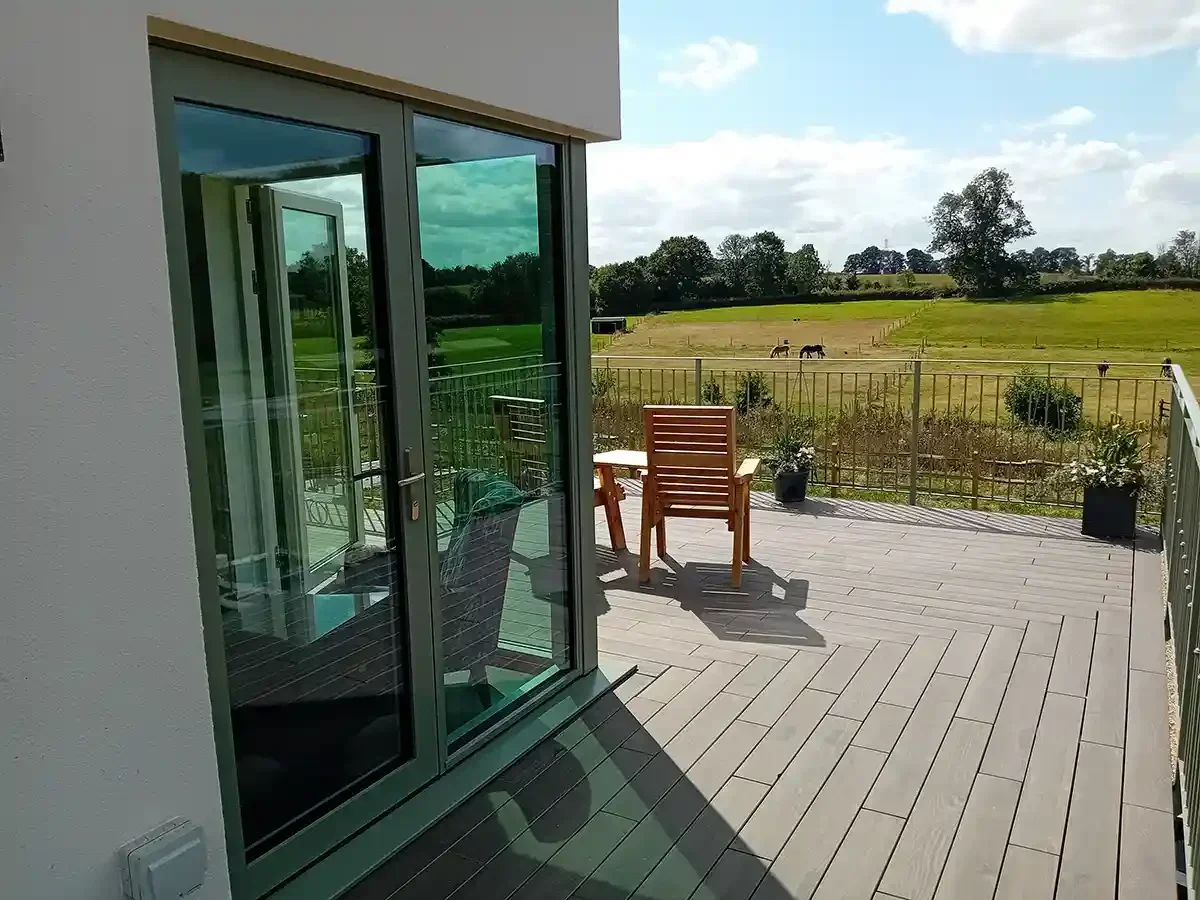 S309A glazed door combined with a Juliet balcony on the third floor of the house. These offer floor-to-ceiling light and open up the master bedroom to the countryside views.