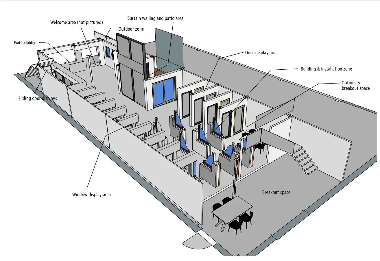 The new showroom will feature a wider range of windows and doors than ever before, with nearly double the number of products in total and in-demand products like the show-stopping triple-track sliding door.