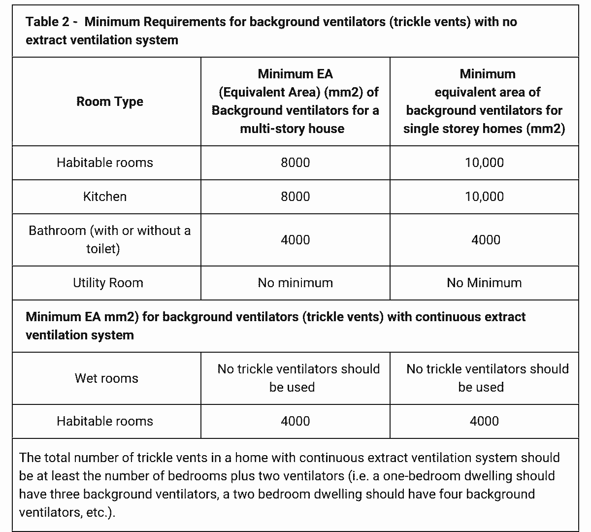 - If the dwelling will have continuous mechanical extract ventilation, installing background ventilators according to requirements at the bottom of Table 2.