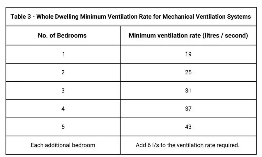 - Five ventilators if the dwelling has more than one bedroom.