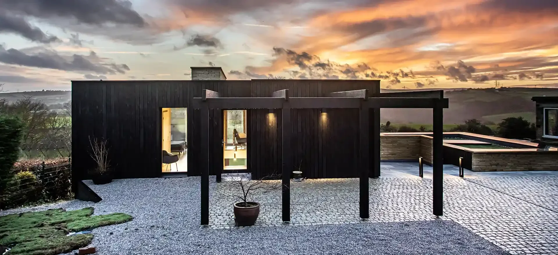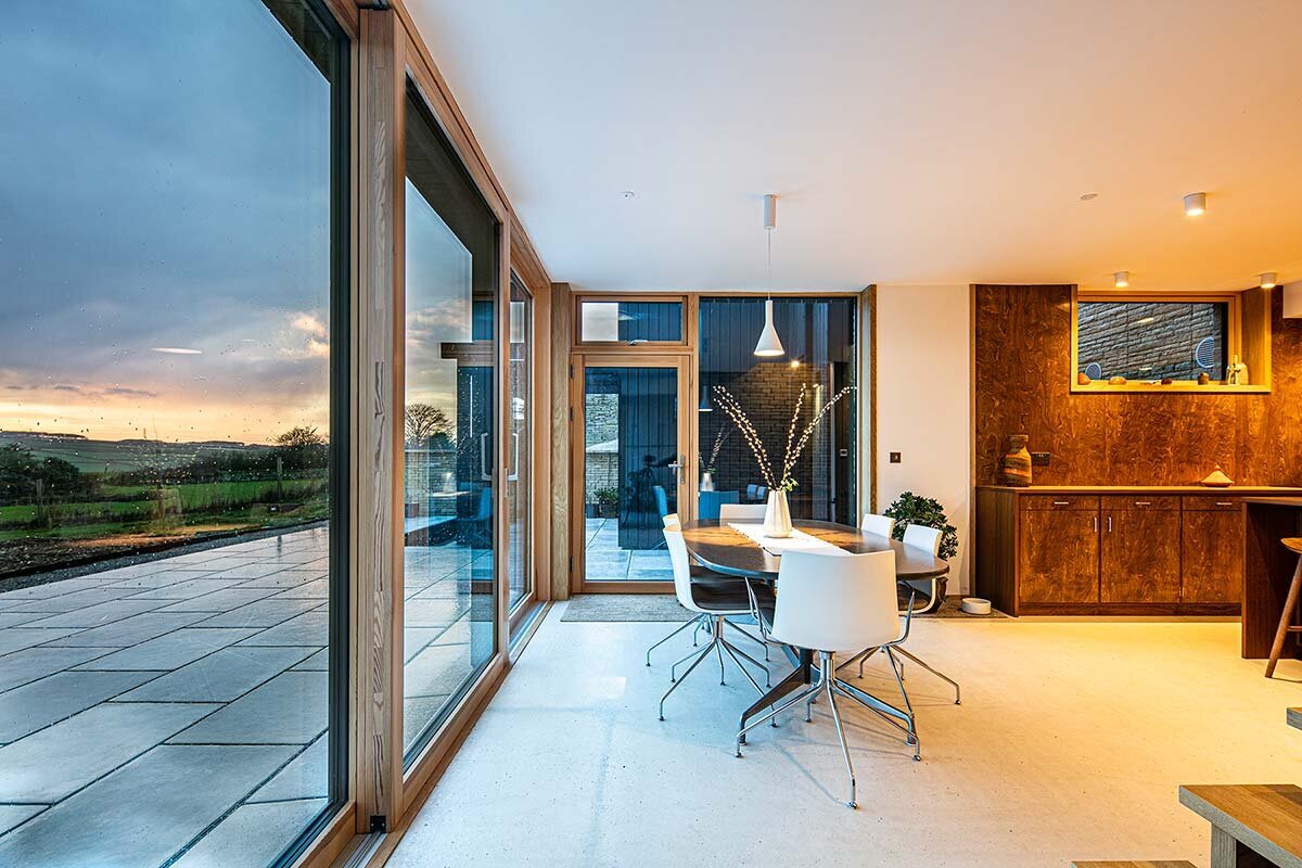 S315A sliding doors on the ground floor providing near uninterrupted views of the surrounding countryside, light floods the home. The project also used our