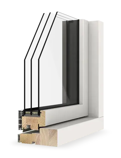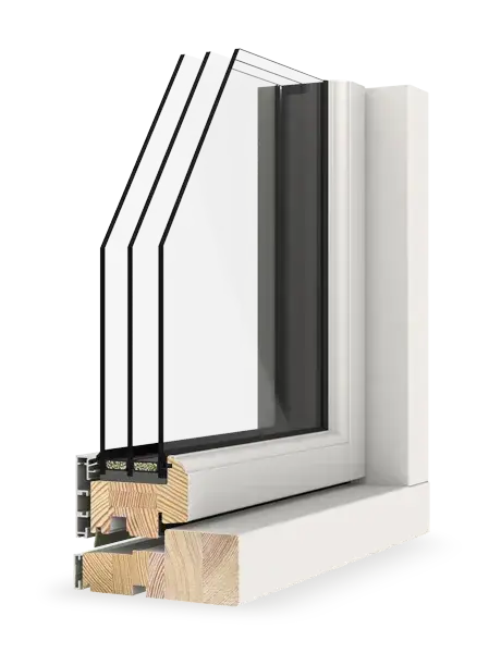 The triple glazed unit is a 48 mm unit with argon gas filling, warm edge spacer bar  and two panes of Low-E glass. Whole window U-Values are around 0.75 W/m²K.