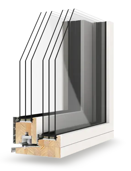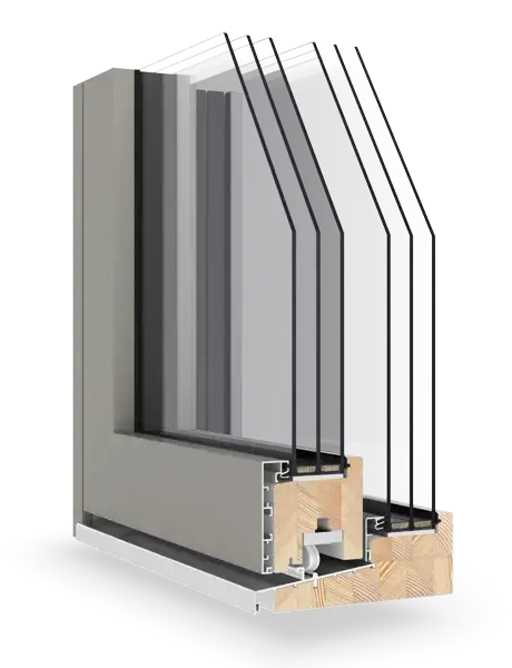 A 184mm or 196mm deep triple-glazed inline sliding patio door with optional aluminium cladding externally.