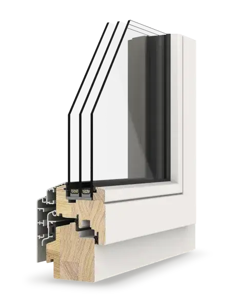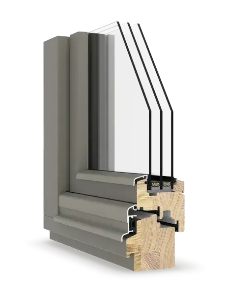 The 78mm laminated frame is combined with a 40mm triple glazed unit with argon gas filling, warm edge spacer bar and two internal panes of Low-E glass. Whole window U-Values are around 0.9 W/m²K.