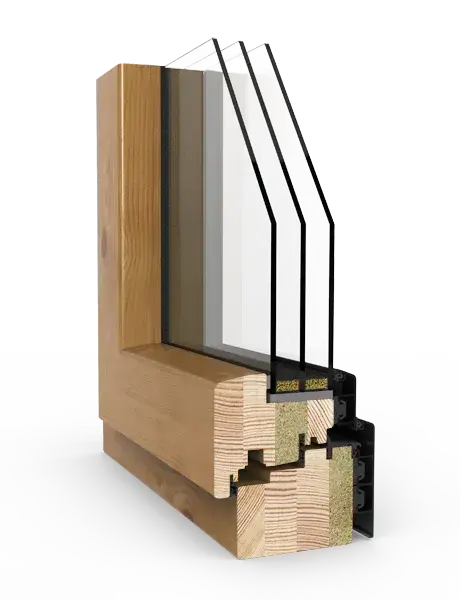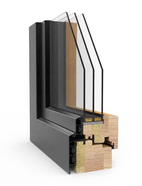 The 88mm laminated timber frame is thermally enhanced by a layer of "Purenit" insulation while external aluminium cladding ensures that the timber frame is protected from the elements and helps improve longevity whilst requiring minimal maintenance.